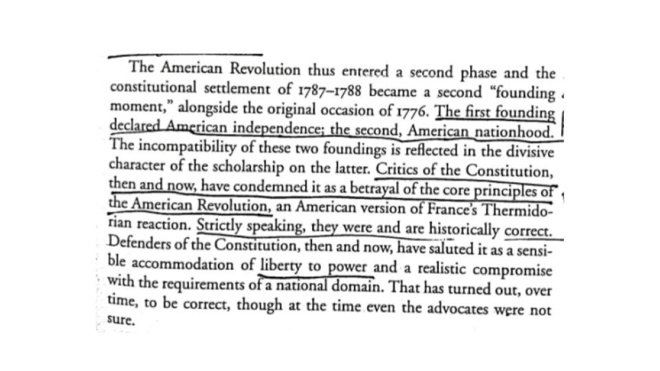 Evaluate this statement: The constitutional settlement (ratification of the Constitution) was a betrayal of the ideals of the American Revolution.